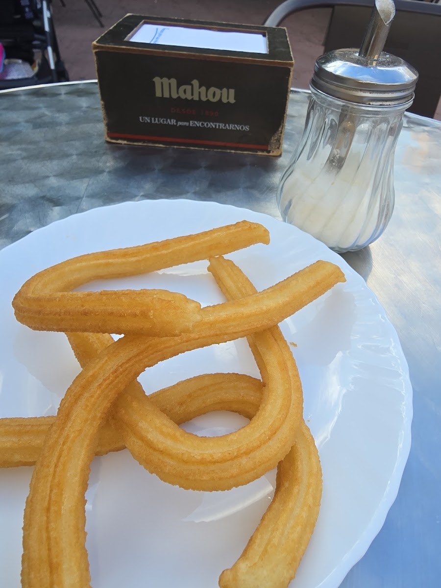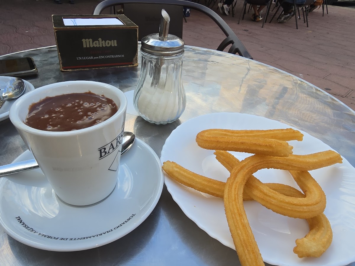 Service here is consistently friendly and efficient — customers often mention how the staff anticipates orders quickly, with churros fried to order so they arrive hot and crisp. This attention to timing adds a little extra pause-worthy pleasure to what could otherwise be an ordinary coffee run. The venue's classic Spanish charm is reflected in simple offerings like jamón with melted cheese, adding a savory option to the mostly sweet-focused menu.